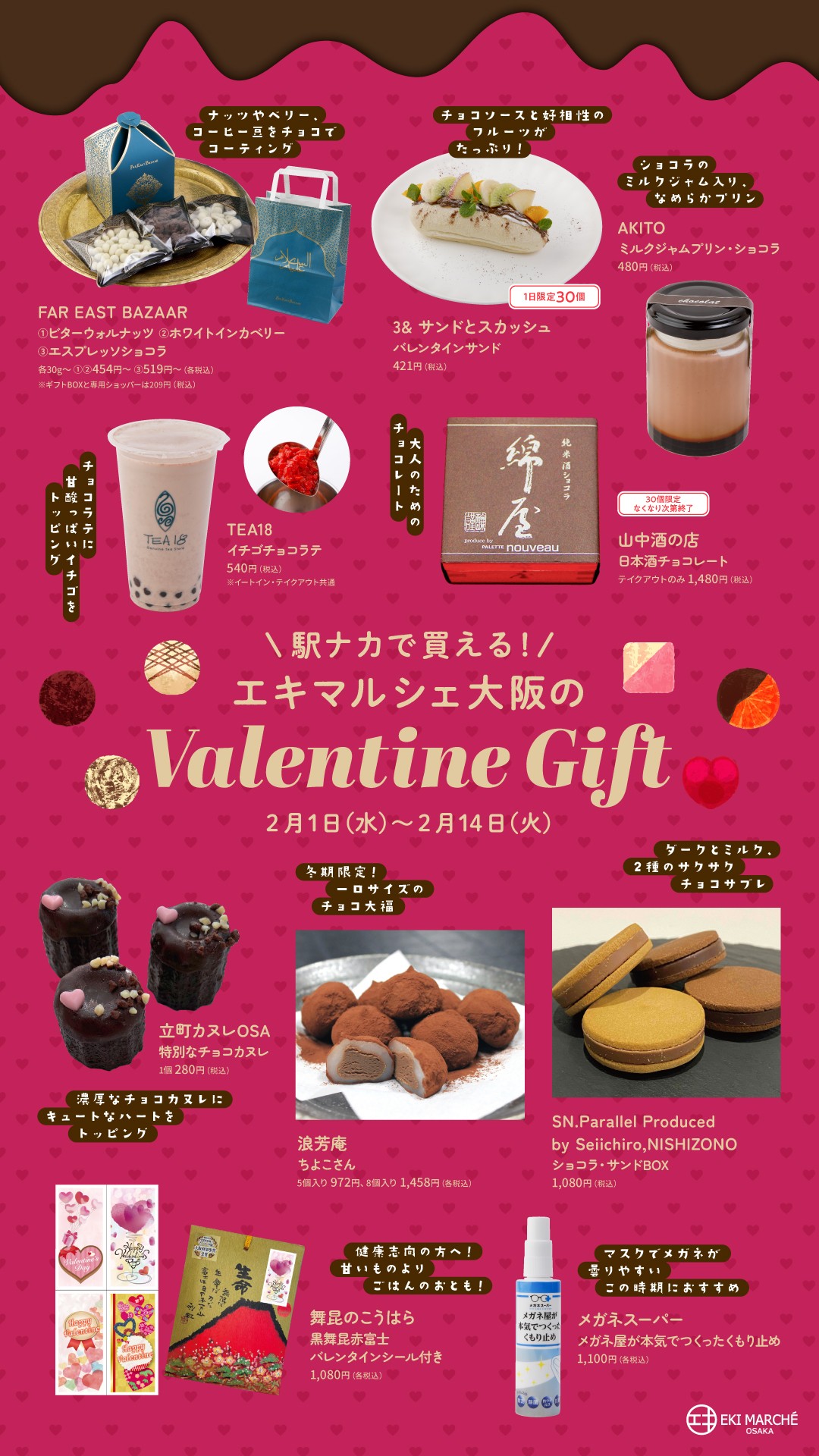2月14日是情人节!!在eki marche大阪,巧克力自不必说,作为情人节礼物也准备了最适合的商品。 忘了买了!想再追加买几个的时候,如果在eki marche大阪的话,马上就可以轻松购物了! 请一定借此机会来eki marche大阪♬
