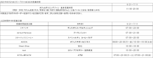 非常感谢您一直以来使用eki marche大阪。 从6月21日(星期一)到7月11日(星期日),营业时间将变更如下。 给客人带来不便,请您理解。