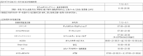非常感谢您一直以来使用eki marche大阪。 从7月12日(星期一)到8月1日(星期日),营业时间将变更如下。 给客人带来不便,请您理解。