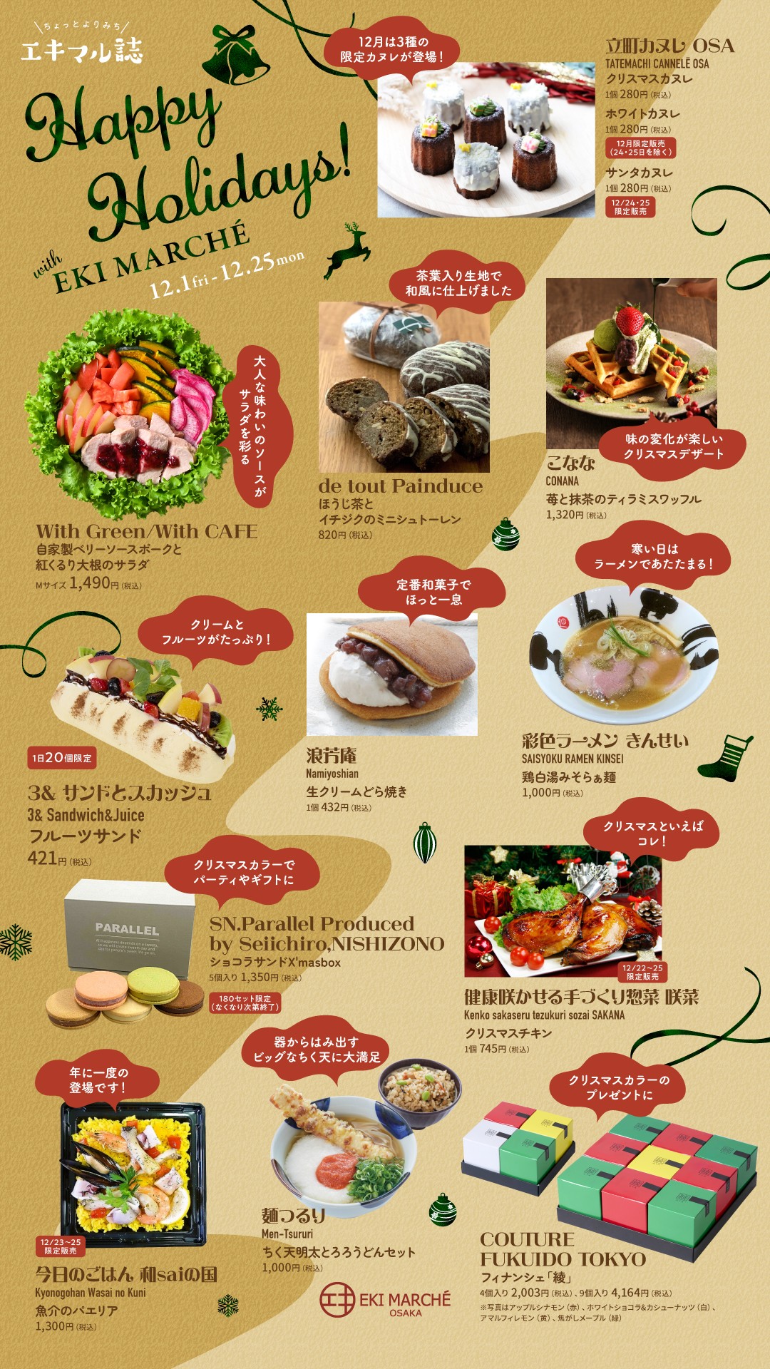 今年也来了圣诞节啊! eki marche大阪有很多圣诞节推荐的商品和物品☆美 从甜甜的寿司到令人松一口气的招牌鸡肉,从ZOOM到ZOOM 请在eki marche度过愉快的圣诞节♪