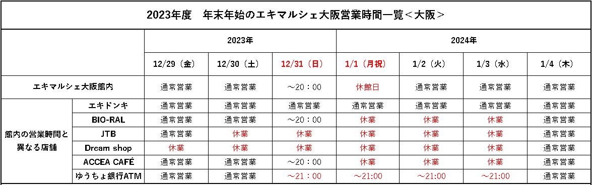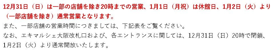 【通知】关于年末年初的营业时间(12/29~1/4)