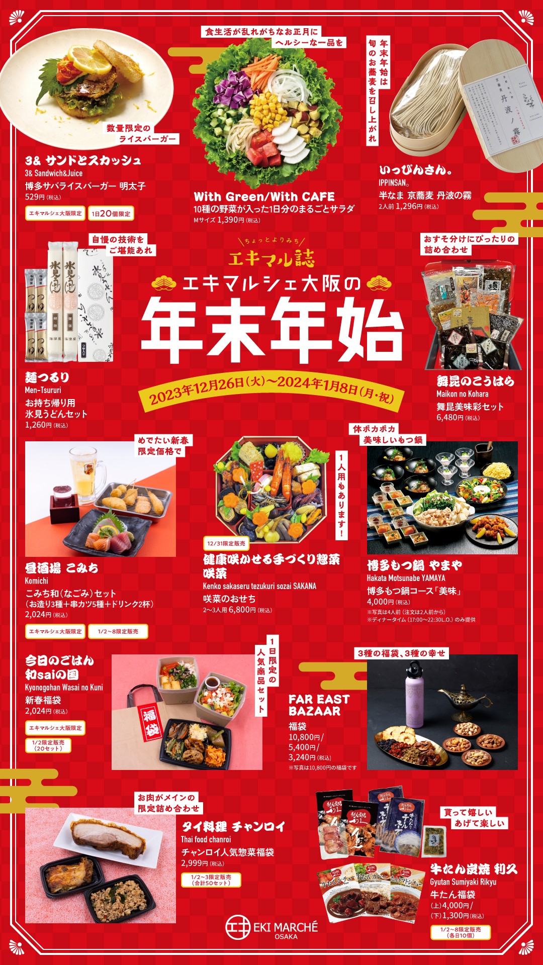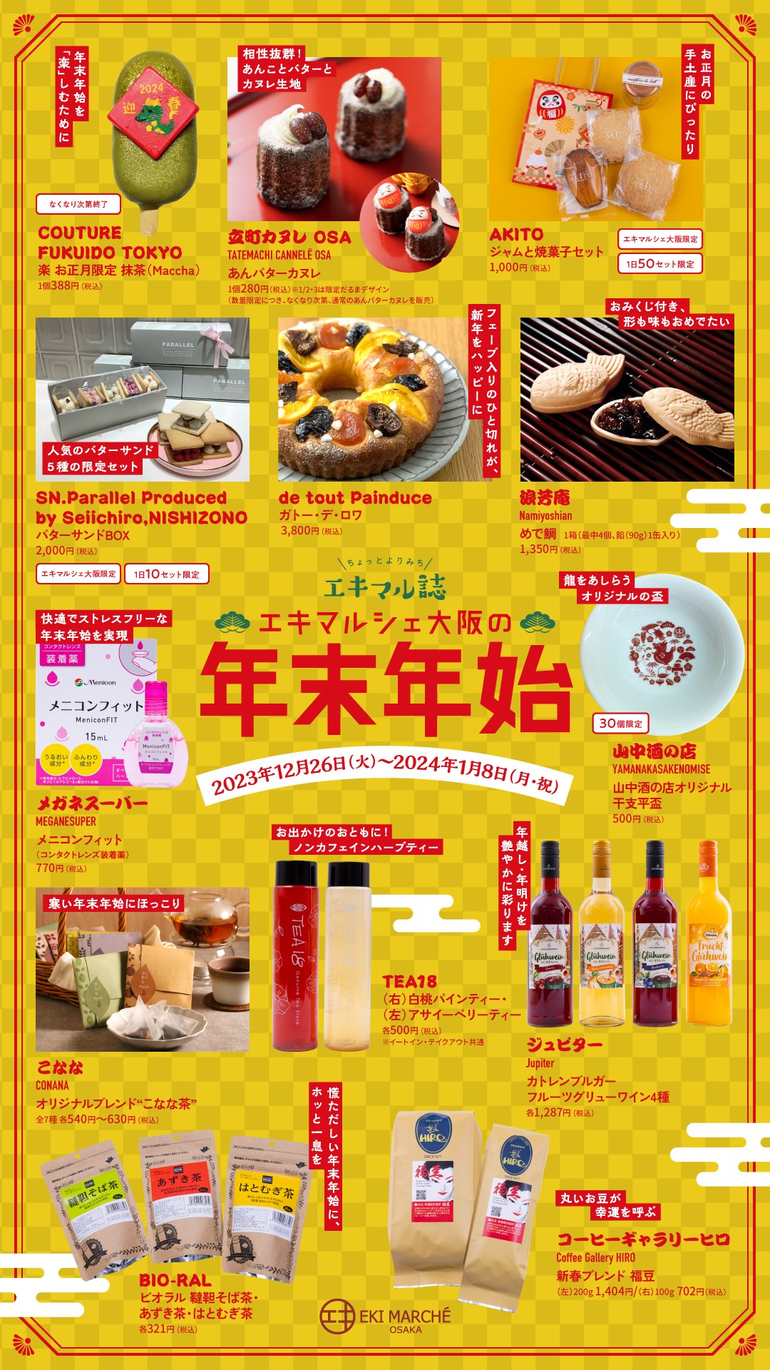 很快,2023年还有一段时间❢ 新年临近了呢✨ 今年是怎样的一年呢?? 在eki marche大阪,可以在匆忙的年末年初放松身心的美食家 备齐了许多适合特产的甜点☺️ 也需要检查限定的福袋!! 在大阪快乐的一年也是eki marche