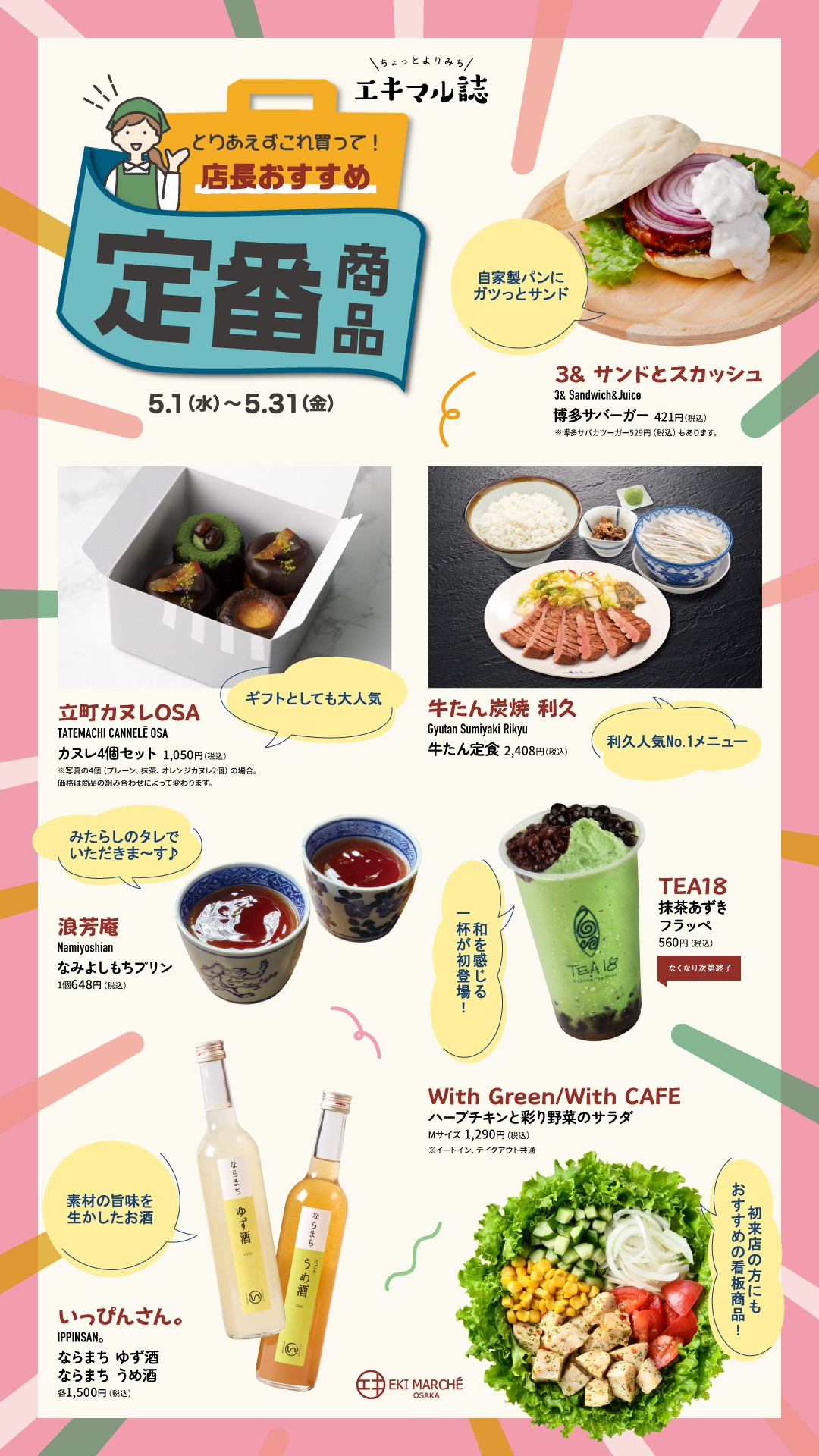 大家已经习惯了新生活了吗? 今年春天来eki marche大阪的各位 应该有很多人会犹豫该买些什么,店里和商品应该很多 因此,在5月号中介绍了店长推荐的推荐推荐商品。 常食和甜点,惣菜和很多商品被介绍 请参考ekimaru杂志5月号,一定要找找自己喜欢的店!