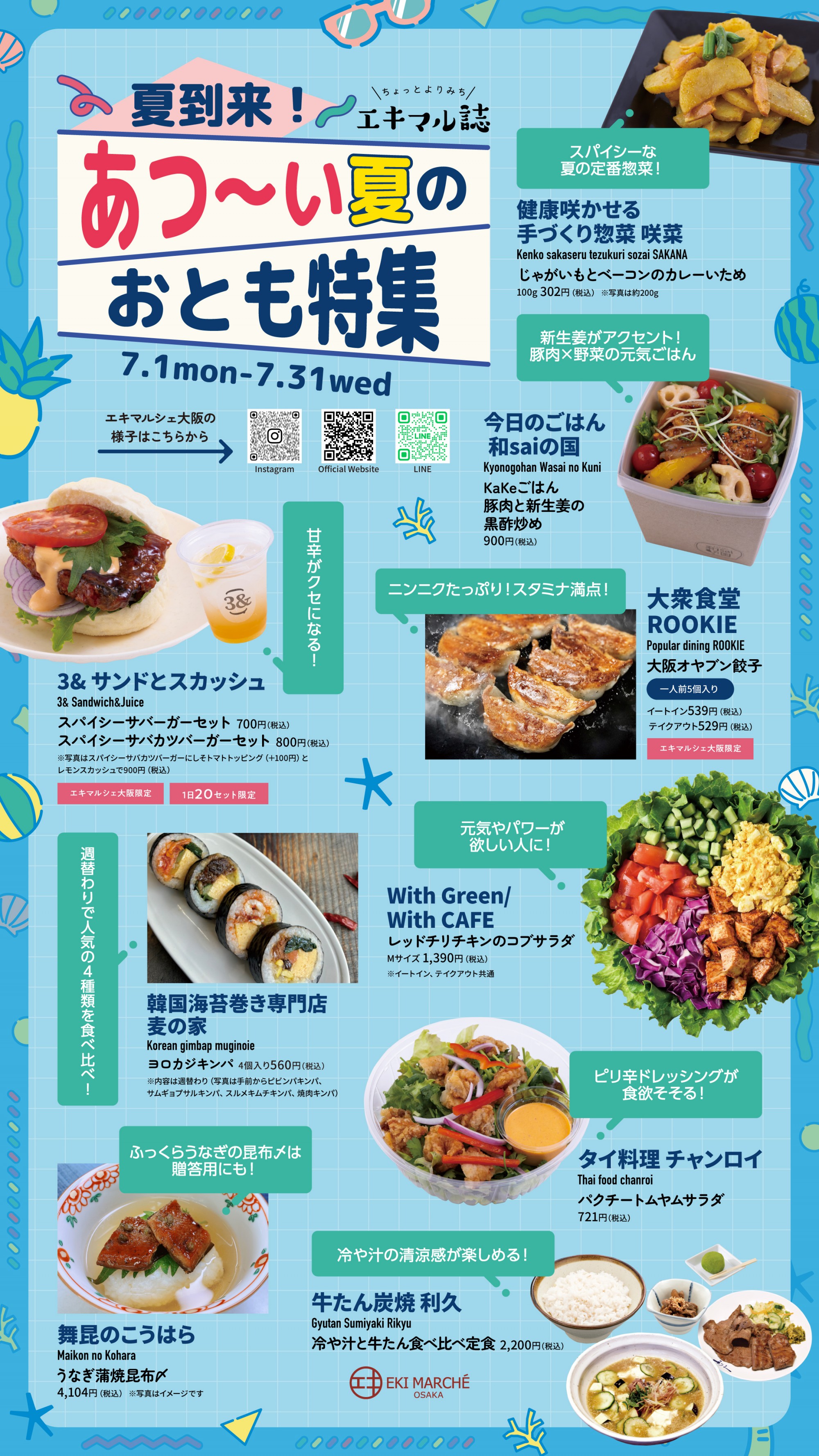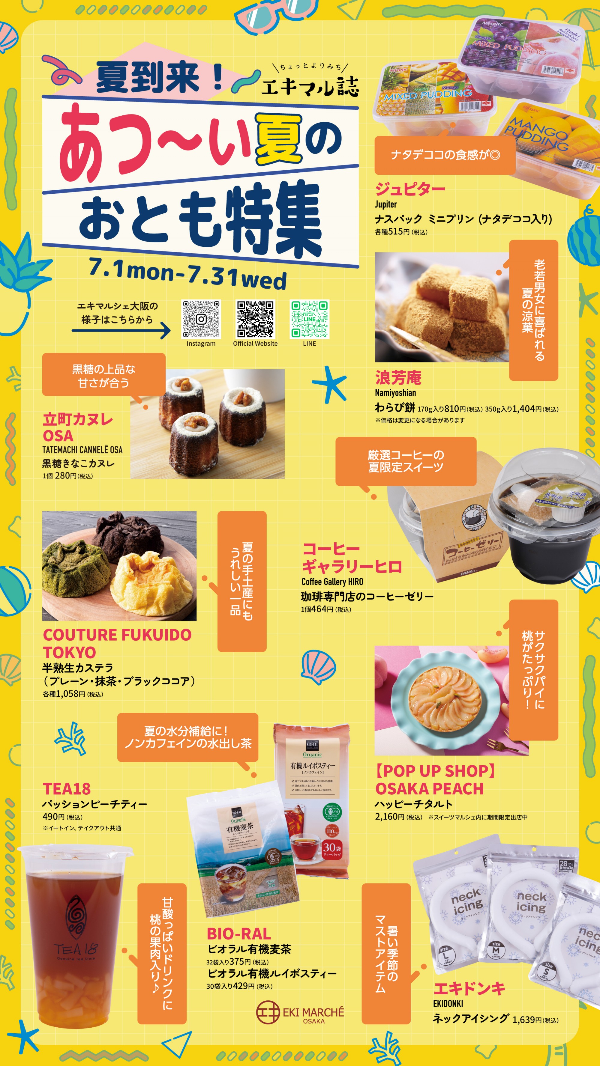 ekimaru杂志7月号公开!主题是【夏天来了!热~夏之友特集】 今年也到了那个时期。 热得没精神…7月号收集了适合你的商品哦~! 一定要来eki marche大阪度过夏天✨