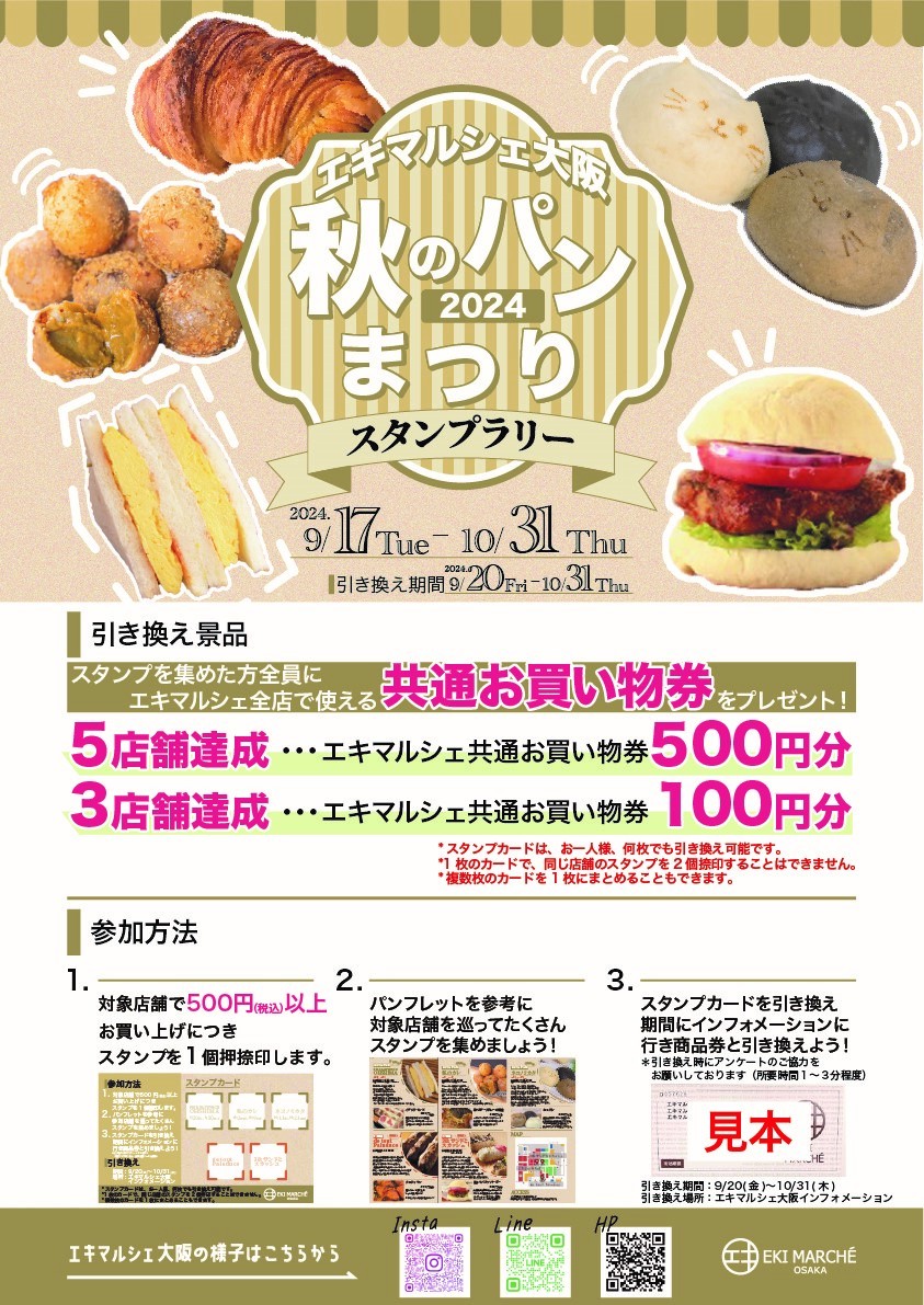 9/17~10/31期间将举办【eki marche大阪秋季面包节】!🎉;