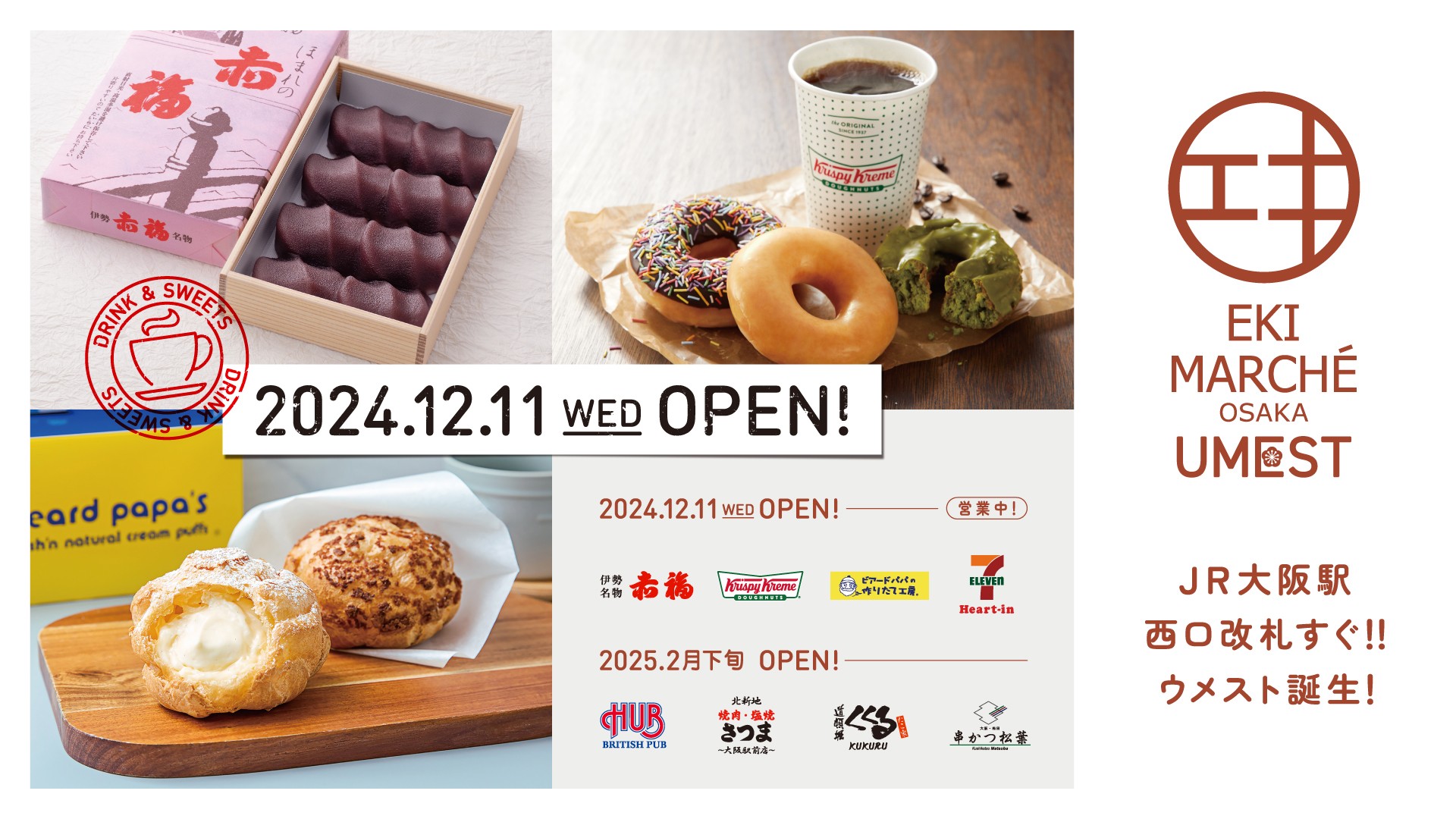 2024年12月11日星期三,在JR大阪站西口“eki marche大阪UMEST”率先开业三家店😊;