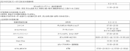 非常感谢您一直以来使用eki marche大阪。 从8月2日(星期一)到9月12日(星期日),营业时间将变更如下。 给客人带来不便,请您理解。