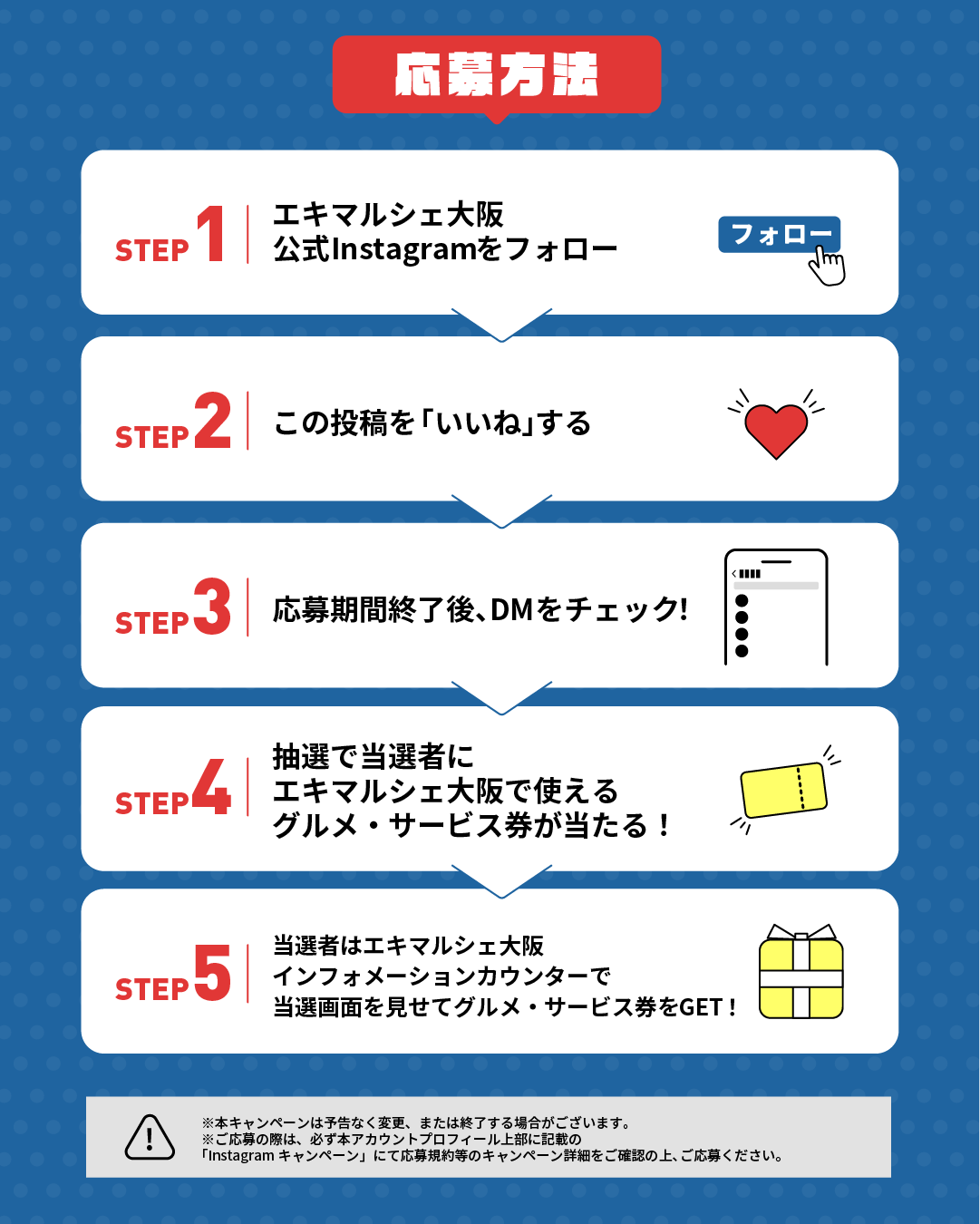 ⑤ 当选者在eki marche大阪信息柜台出示当选画面,GET购物券!