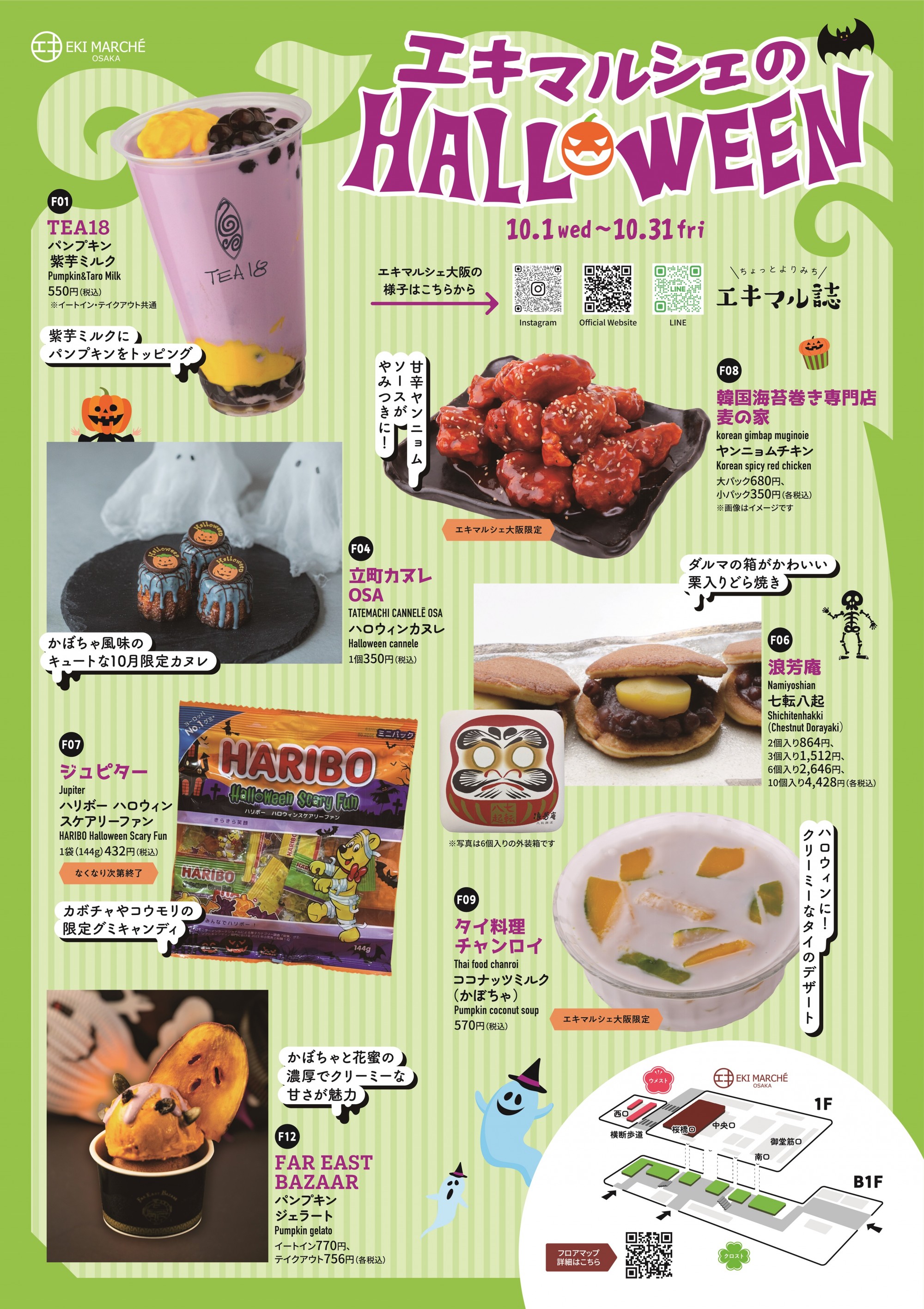 外观和味道都充满了万圣节气息! 大量使用南瓜制成的甜点,以及与万圣节有关的商品齐聚一堂😊; 今年的万圣节也一定能尽情享受! 请一定要趁这个机会品尝。