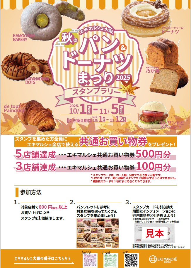 10/1~11/5期间举办【eki marche大阪秋季面包节】!🎉;