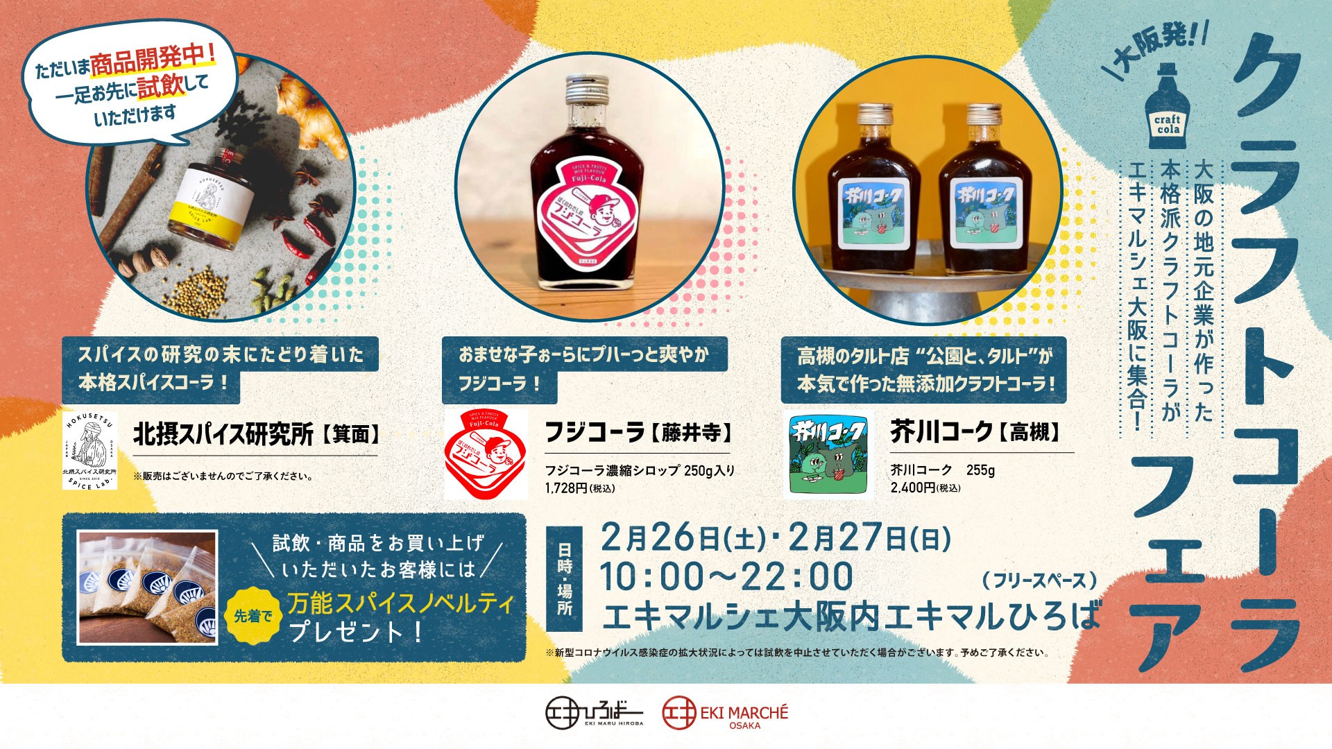 2月26日(周六)、2月27日(周日)这两天,大阪当地企业制作的“手工可乐”可乐糖浆将在自由空间“Event space”期间限定试饮销售!