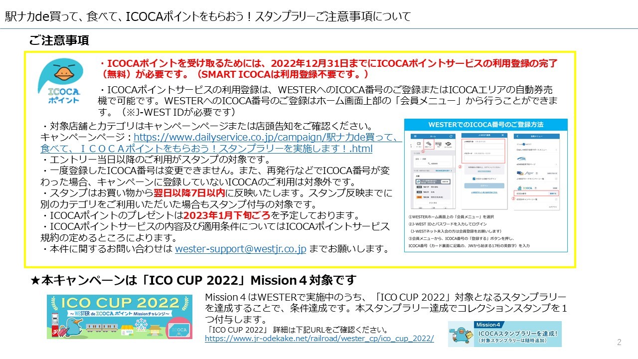 ※为了获得ICOCA积分,必须在2022年12月31日之前完成ICOCA积分服务的使用登记(免费)。(SMART ICOCA无需注册。)