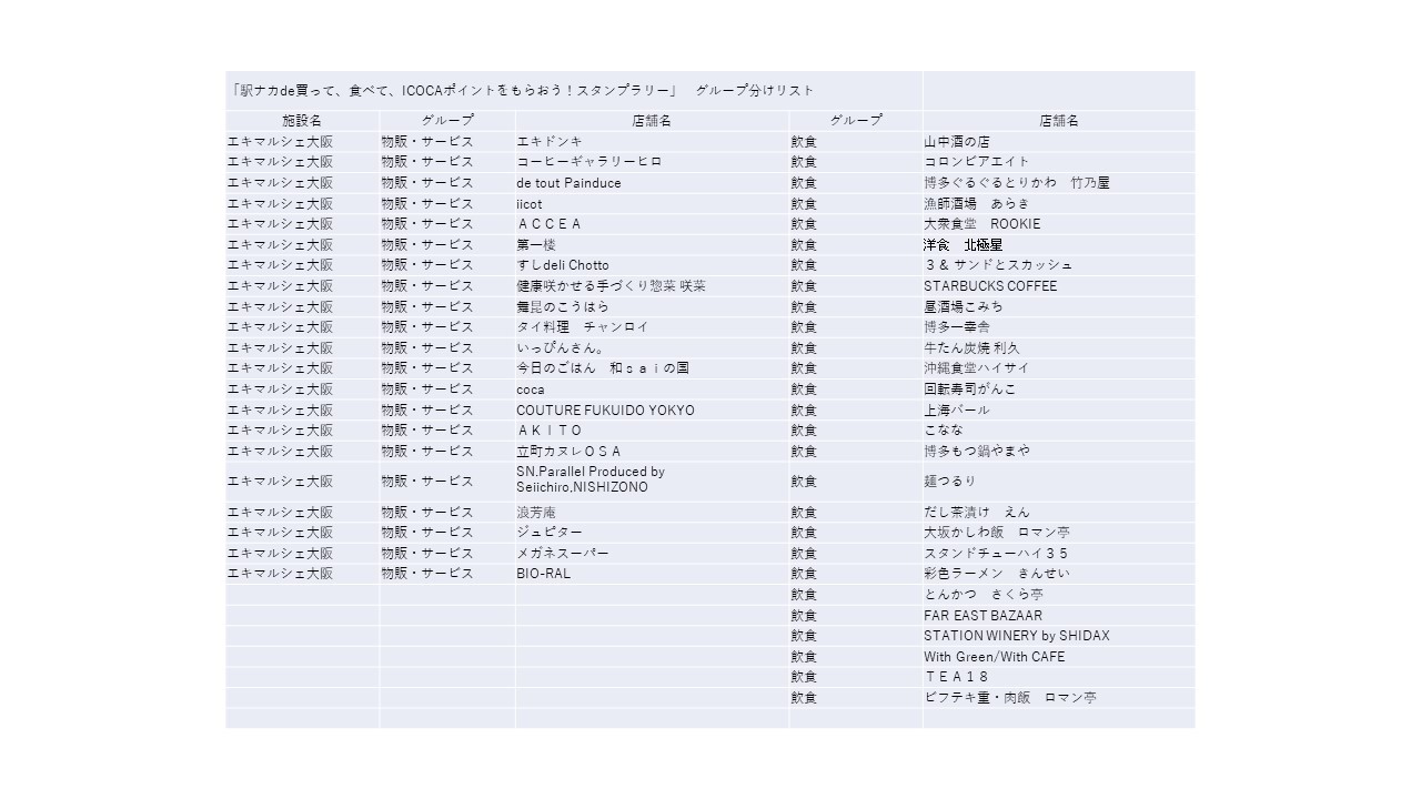 可以在eki marche大阪、eki marche新大阪、eki marche宝冢、交叉内的ICOCA支付的店铺(111家)