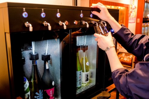 设置了自助风格的日本酒服务器,平时可以轻松品尝54种日本酒。