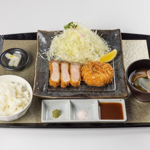 请一定要品尝富含虾咕噜咕噜的美味融化奶油可乐饼和多汁的茶美猪的脂肪甜味和里脊肉的美味。 虾奶油可乐饼&烤猪排套餐 1,270日元(含税)