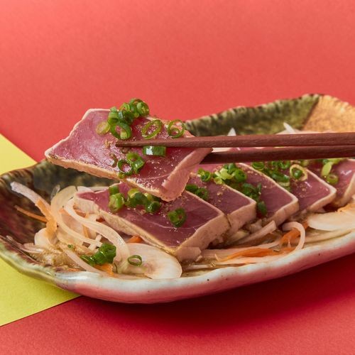 以国内为数不多的金枪鱼捕捞量而自豪的冲绳,是众所周知的金枪鱼天国。请和猎户座啤酒一起品尝新鲜的金枪鱼和清爽的海星橙醋搭配出众的“金枪鱼敲打”! 金枪鱼敲打 990日元(含税) ※只在17:00以后提供