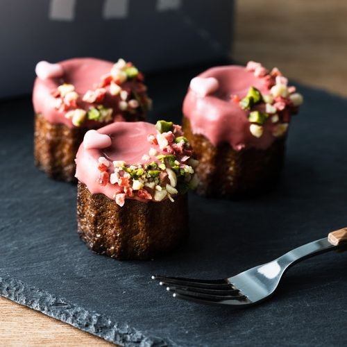 在使用了大量白巧克力的卡努勒上加上浓厚的草莓巧克力做成了。试着向重要的人怀着平日的感谢送礼怎么样。 草莓巧克力卡努雷 1个280日元(含税)