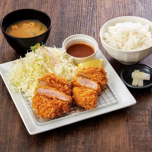 茶美猪是一种兼具优质瘦肉和无癖好的脂肪和浓郁味道的日本品牌猪。这是樱花亭引以为豪的套餐,可以品尝到萨摩茶美猪柔软的肉质和美味浓郁的瘦肉部分。 茶美猪炸猪排套餐 120g 1,450日元(含税)
