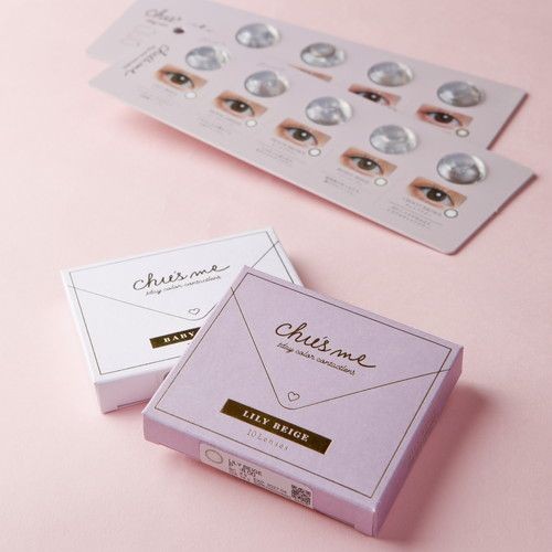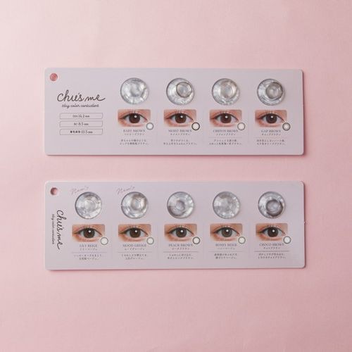 【眼镜超市】柔美的瞳孔颜色齐聚一堂 作为模特和影响者而活跃的“受欢迎创作者”Yukosu制作的1日类型的色彩搭配。拘泥于透明感和脱颖而出感的“莉莉米色”和“气氛提升”,无论是黑眼还是茶眼,色素淡的眼睛都能实现的人气颜色。 chues me 1盒10张1,705日元(含税)