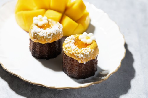 现在用当季的芒果做成了适合夏天的卡努勒。在融化般甜味的芒果面团上,配上芒果果酱。以椰子为重点,外观也很可爱的卡努勒,作为特产怎么样。 芒果卡努雷 1个280日元(含税)