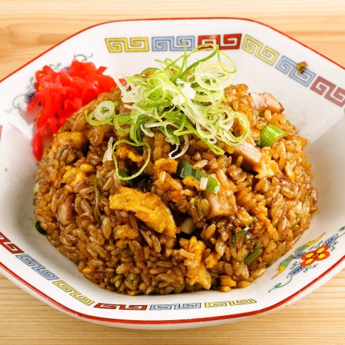 炒饭满了葱的香味和牡蛎提取物的美味。还有很多自制的地滚球叉烧。这是推荐给想吃的人的一盘。 浓郁焦葱油和牡蛎美味的黑美味炒饭 餐饮759日元(含税)、外带746日元(含税)